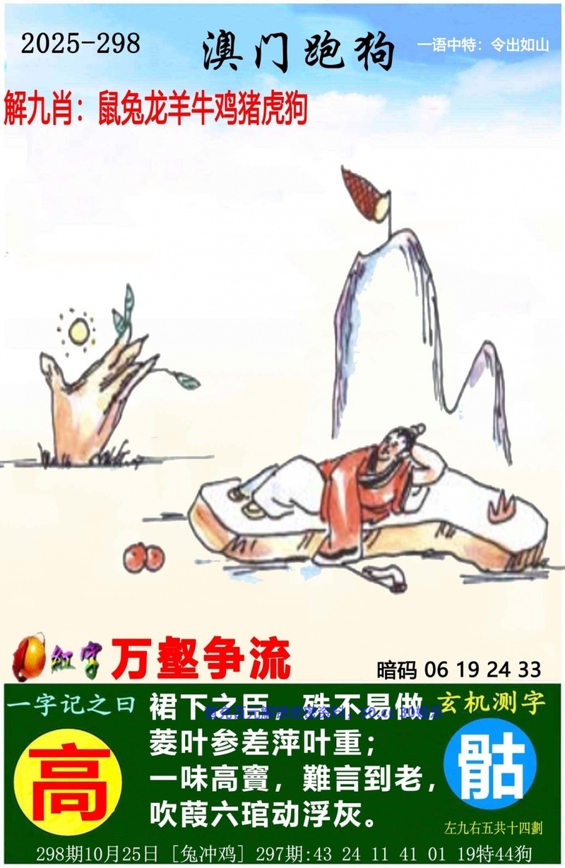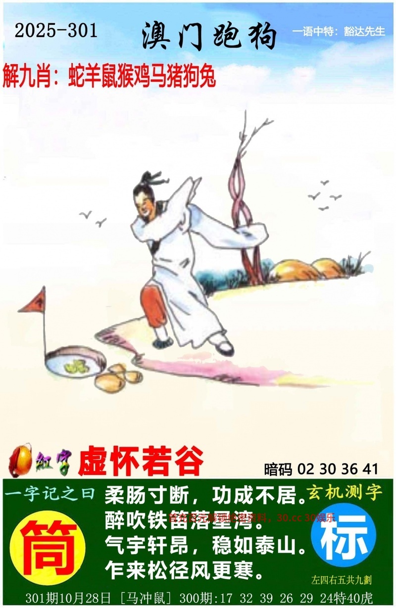 303期:电脑推算/正版解一肖输精光/玄机解一肖/六合皇五字