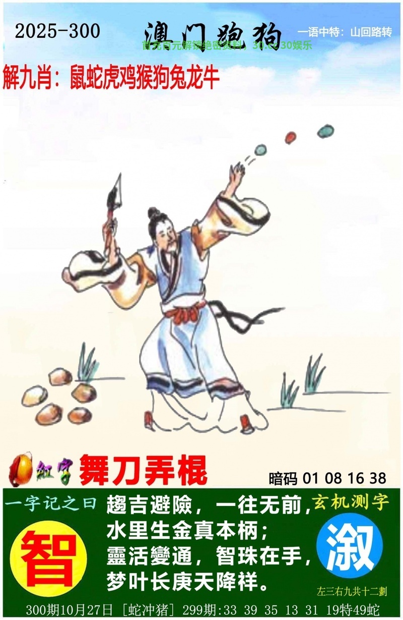 303期:特码暗语/曾道人救世心经/攻特料/六合心经/平码生肖点将